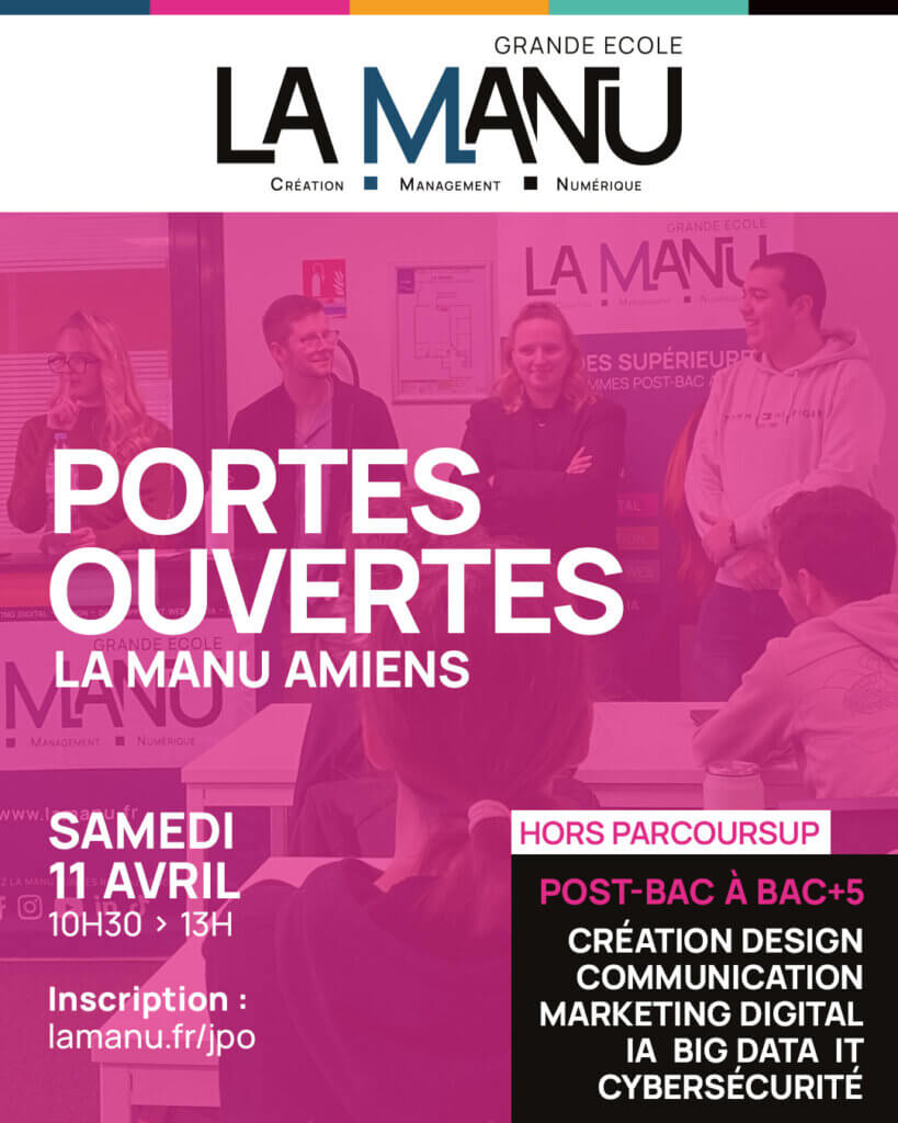 La Manu Amiens est un établissement d’enseignement supérieur qui forme aux métiers du digital : développement web, data, intelligence artificielle, design, communication et marketing digital. Elle s’adresse aux bacheliers, aux étudiants post-bac, ainsi qu’aux adultes en reconversion et aux professionnels souhaitant monter en compétences dans le numérique.